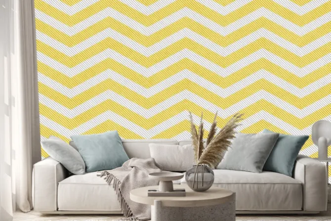 Naklejka: Blado żółty i biały zygzak teksturowane tło tkaniny