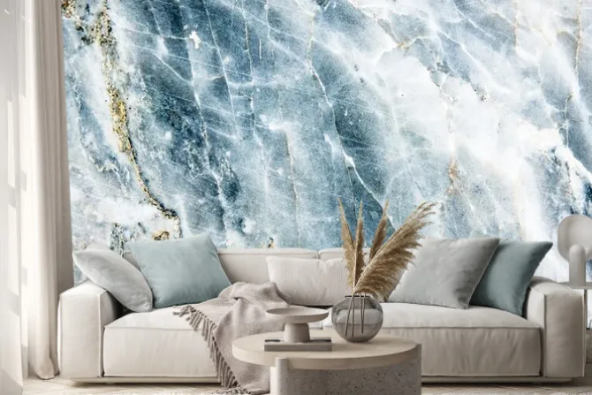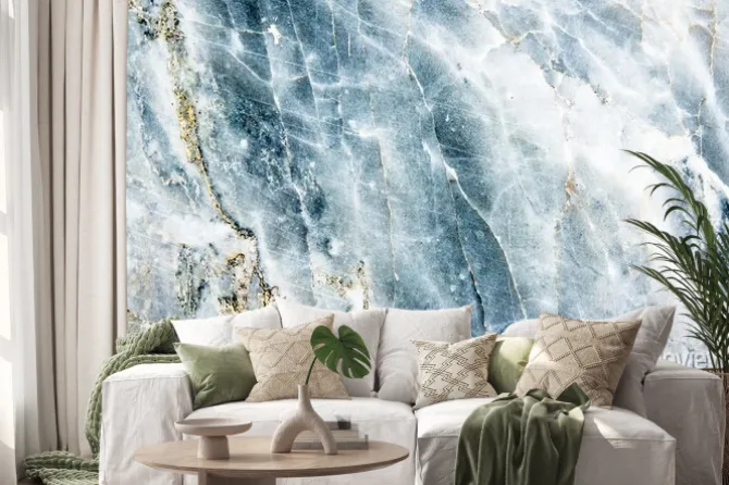 Naklejka: Błękitno-biały marmur