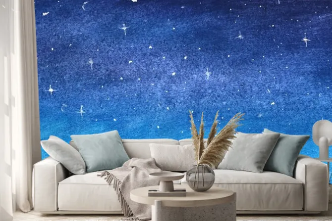 Naklejka: Błękitny gwiaździsty niebo w akwareli