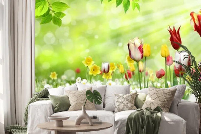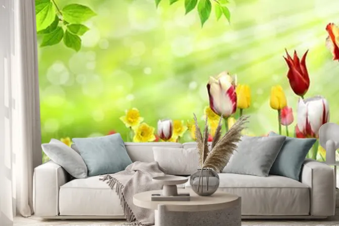 krajobrazy, zieleń, kwiaty, tulipany