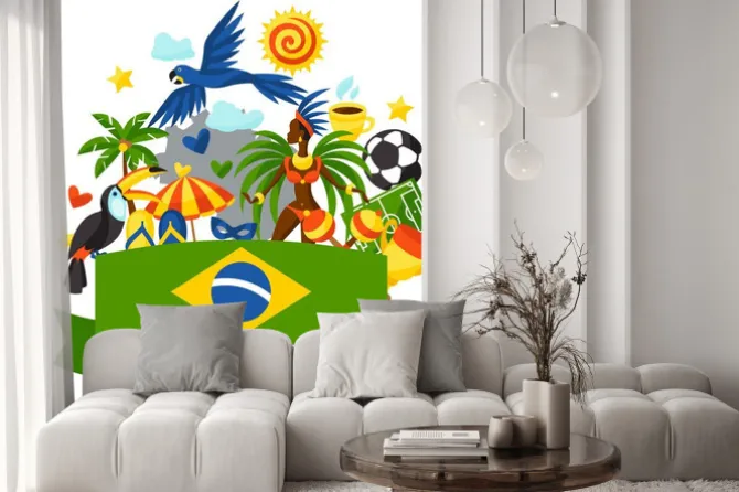 Naklejka: Brazylia tle stylizowane obiektów i symboli kulturowych