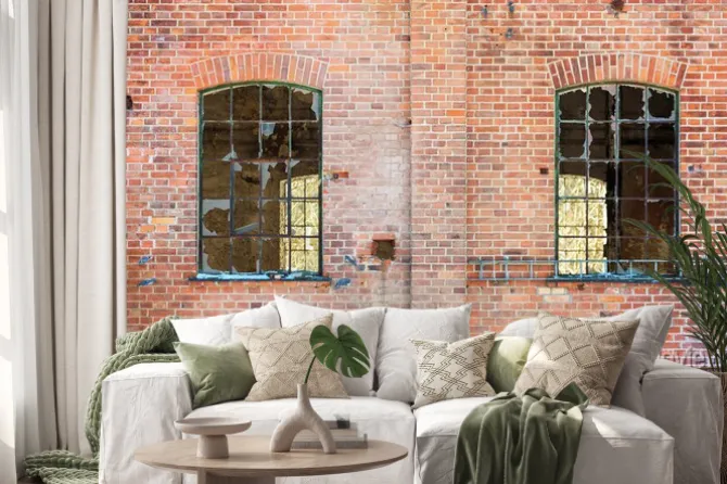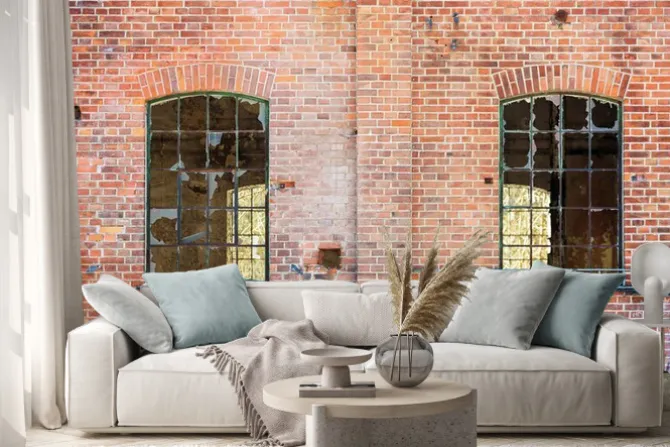 cegła, okna, czerwony