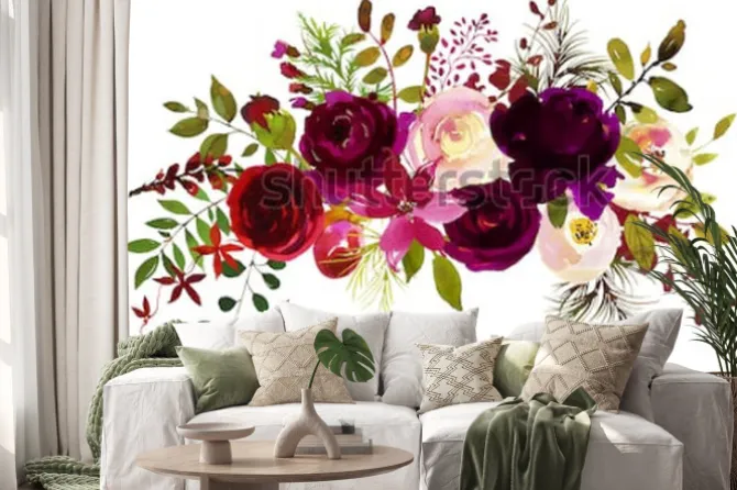 Naklejka: Bukiet róż w odcieniach bordo i kremu z liśćmi