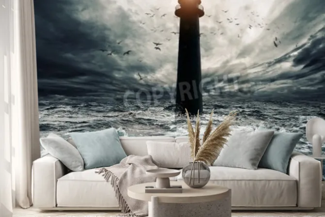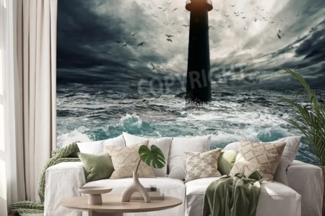 Naklejka: Burzliwy niebo nad zalanym latarni