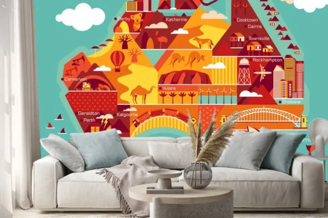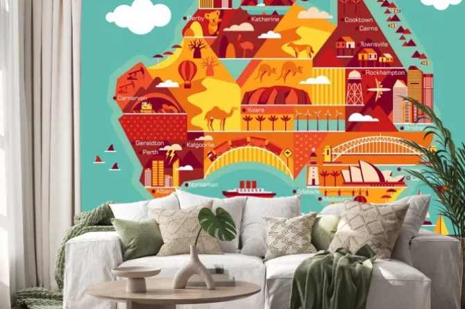 Cartoon map of Australia.