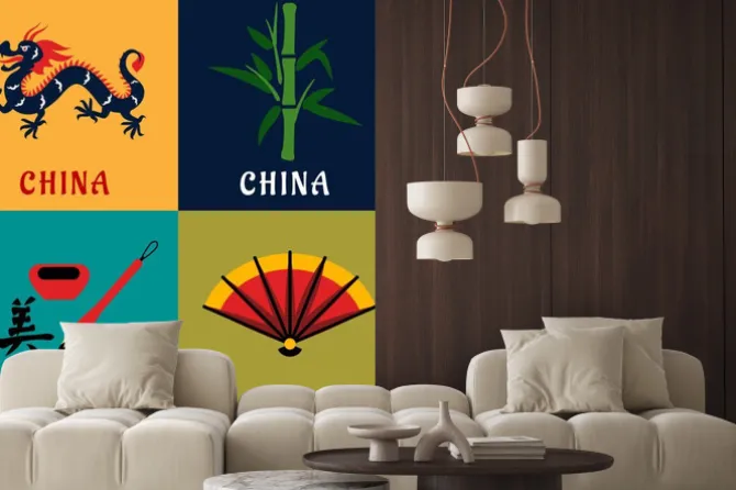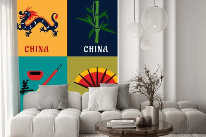 Naklejka: Chiny kultury i tradycji płaskie ikony