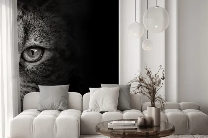 Naklejka: Ciemny pysk kota close-up. przedni widok