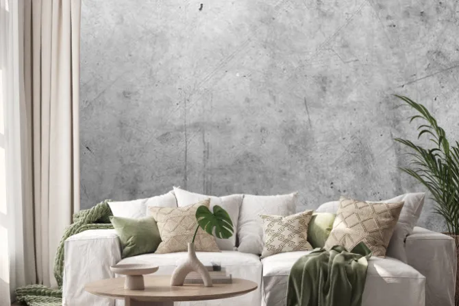 Imitacja betonu szara kamienna ściana.