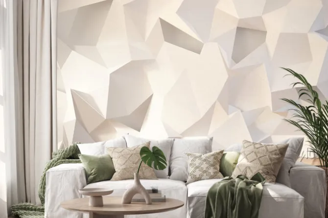 Imitacja ściany z bryłami 3D.