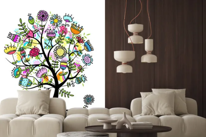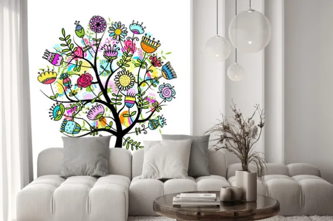 Naklejka: Kolorowe drzewo z kwiatowymi gałęziami