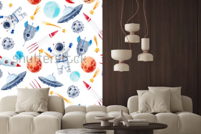 księżyc, kosmos, planety, gwiazdy, niebo, galaktyka, rakieta, pokój dziecięcy