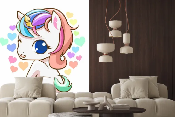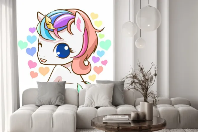 Naklejka: Kreskówkowy jednorożec kolorowy