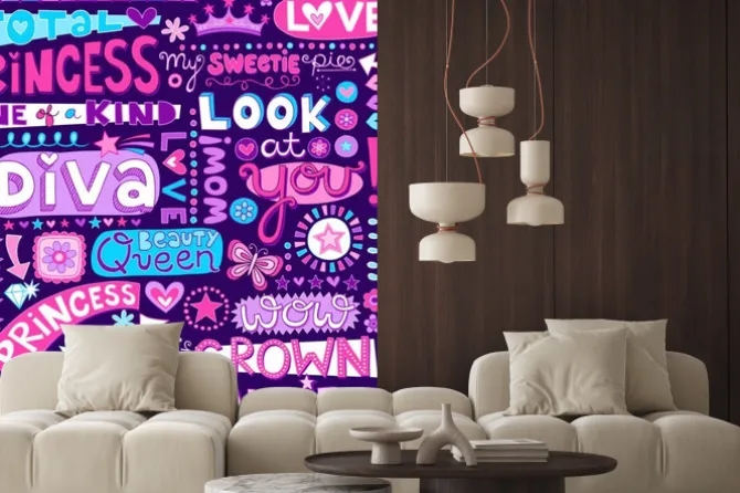 Naklejka: Księżniczka fairy tale doodles diva słowo ilustracji wektorowych