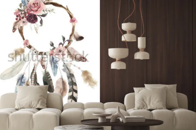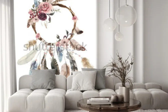 Naklejka: Łapacz snów z kwiatami i piórami
