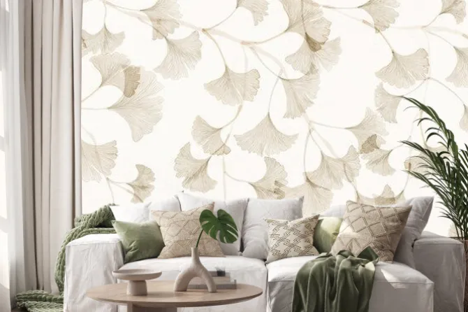 Naklejka: Liście miłorzębu w stylu minimalistycznym