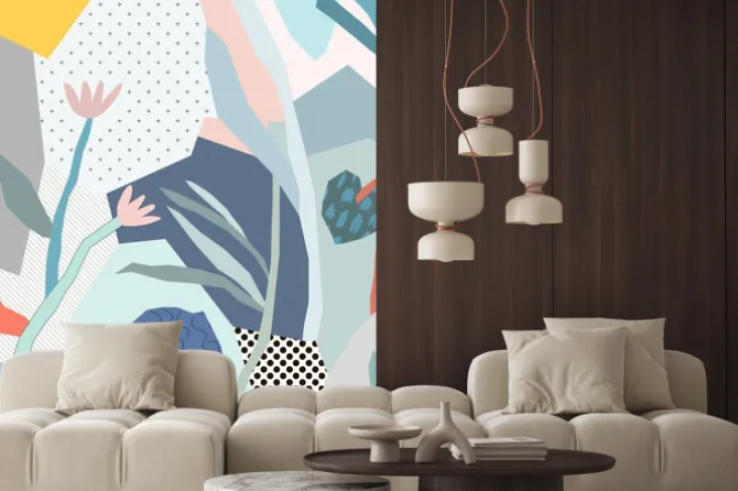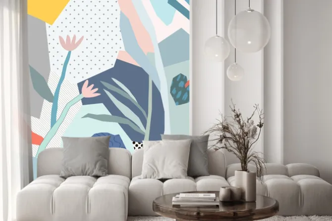 Naklejka: Pastelowa abstrakcja geometryczna z roślinami