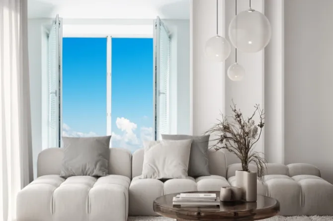 Naklejka: Piękne błękitne niebo widziane przez okno