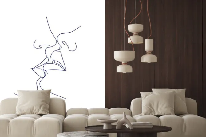 Naklejka: Pocałunek namalowany linią w stylu line art