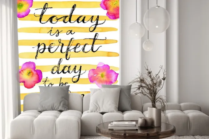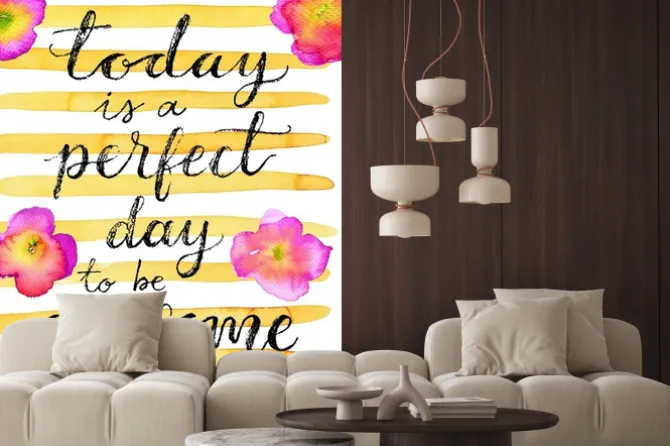 Naklejka: Pogodny napis na tle pasków z kwiatami