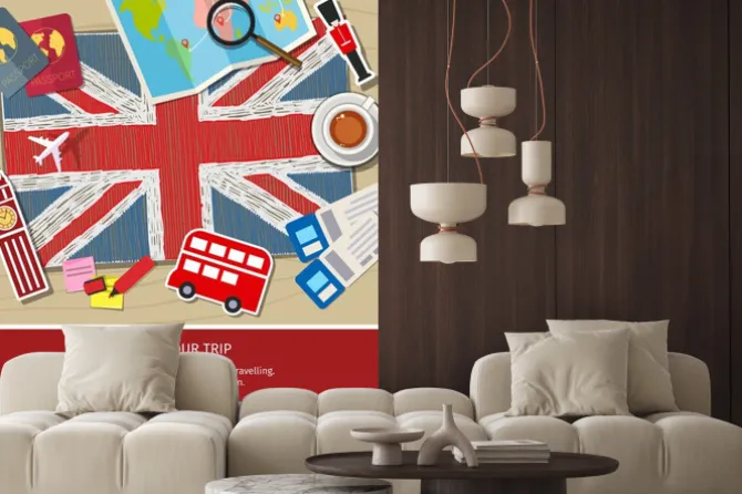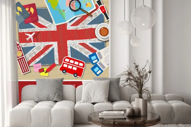 Naklejka: Pojęcie podróży lub nauki angielskiego.