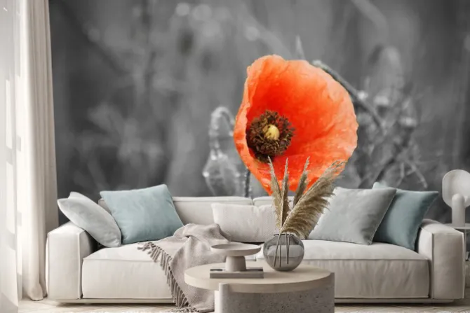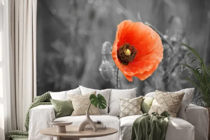 Naklejka: Pole czerwone maku w lecie