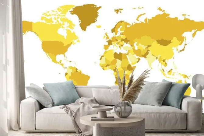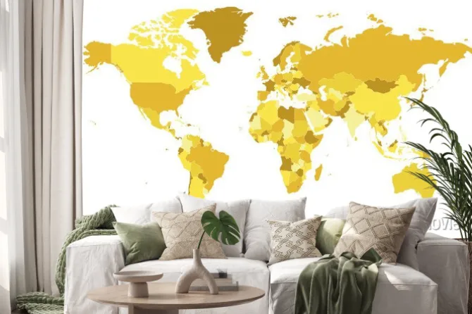 Polityczna pusta mapa świata ilustracji wektorowych z różnymi odcieniami żółtego dla każdego kraju. Edytowalne i wyraźnie oznaczone warstwy..