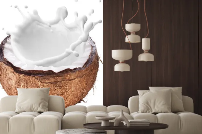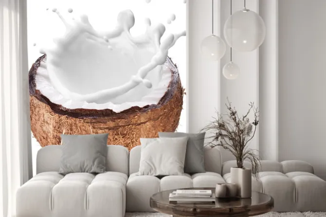 Naklejka: Powitalny mleka kokosowego z wewnątrz.
