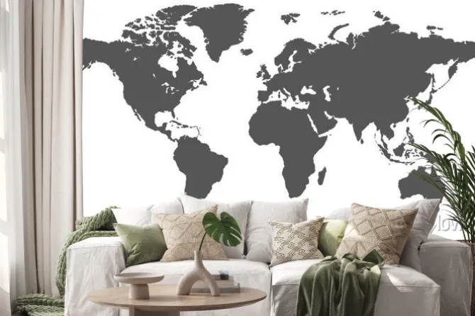 Naklejka: Prosta mapa świata w czarnym kolorze