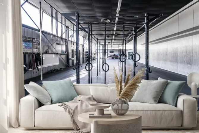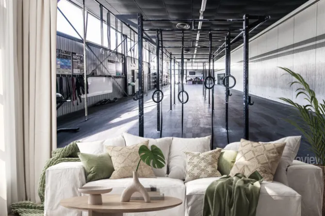 Naklejka: Prosty widok crossfit siłownia z słońcem