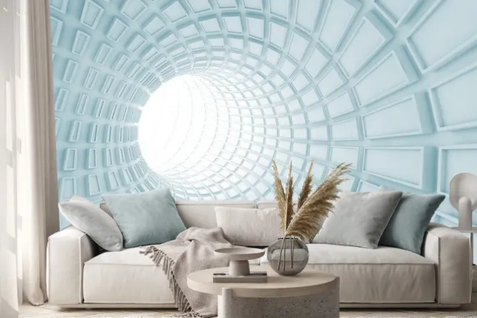 Naklejka: Przechodząc niebieskim tunelu wnętrze z wytłaczanych płytek
