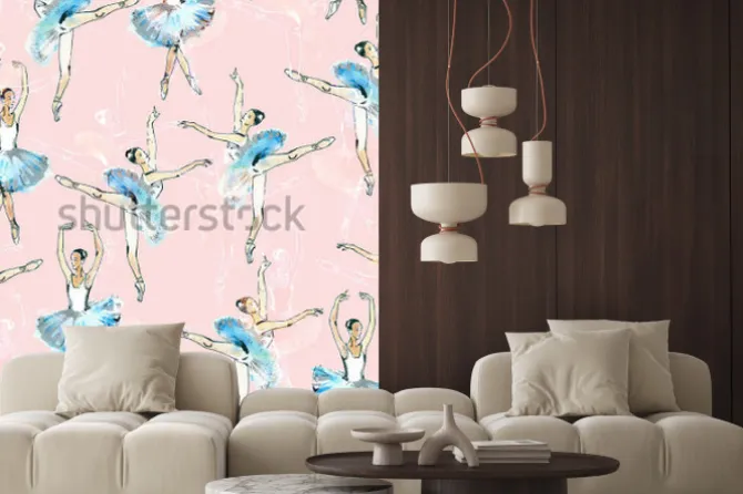Przenoszony wzór baletniczy tancerze, czarny, biel i srebrny rysunek, akwarela obraz, dostęp do różowego tła..