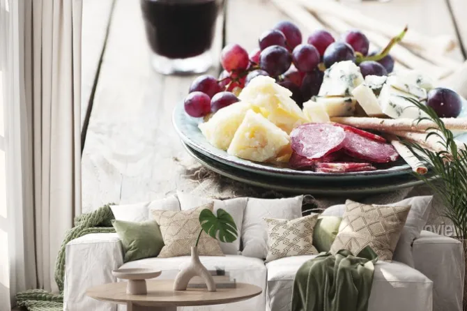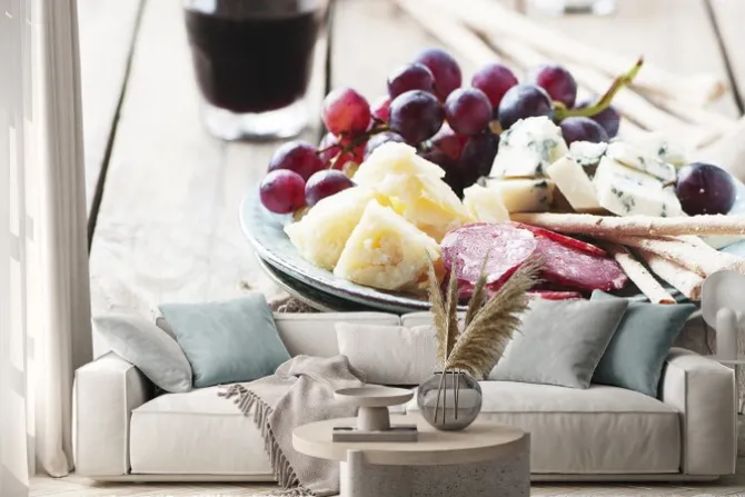 Naklejka: Przystawka z serem, kiełbasą i winogron