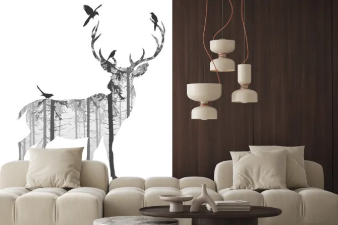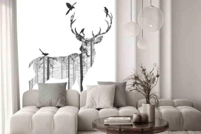 Naklejka: Ptaki siadające na sylwetce jelenia
