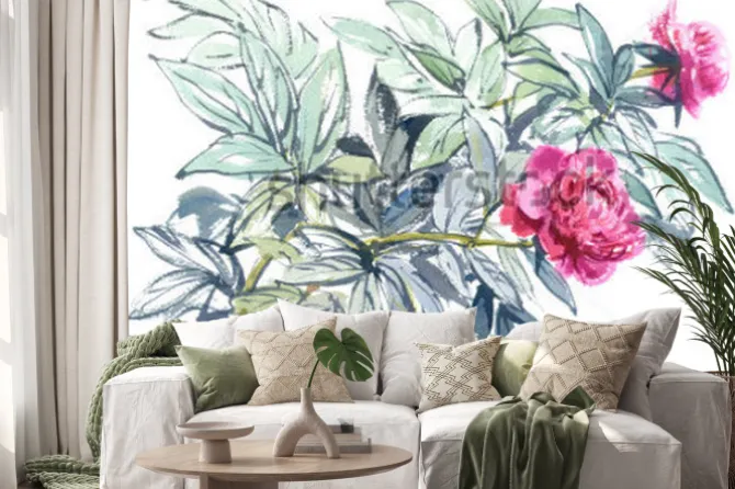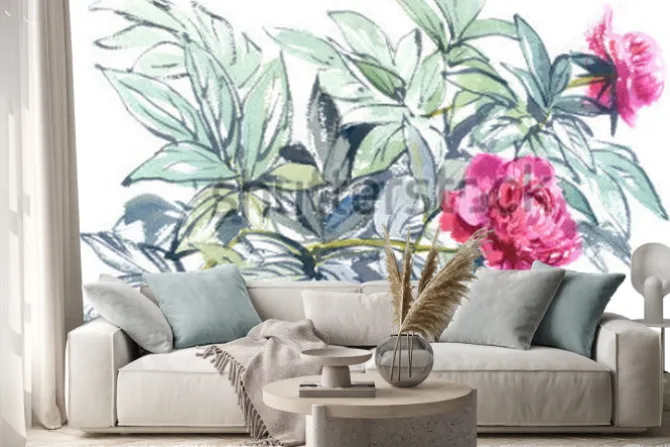 Naklejka: Purpurowa piwonia, akwarela szkic z natury