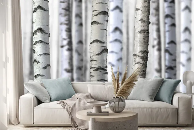 Naklejka: Realistyczny las brzozowy