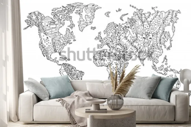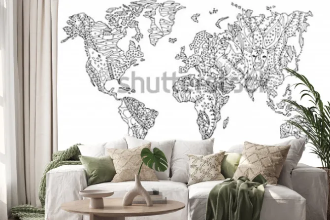 Naklejka: Ręcznie rysowana mapa świata ze zwierzętami
