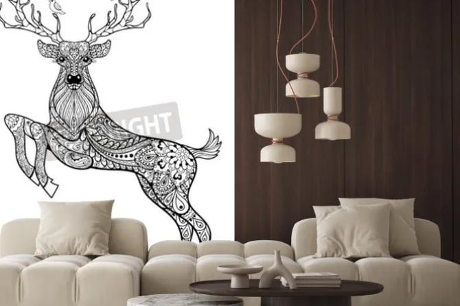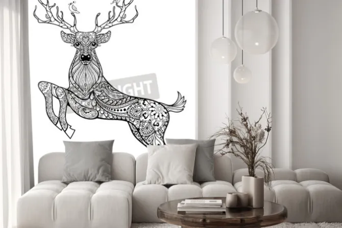 Naklejka: Ręcznie rysowane magiczne rogami jelenia z ptaków dorosłych stresu