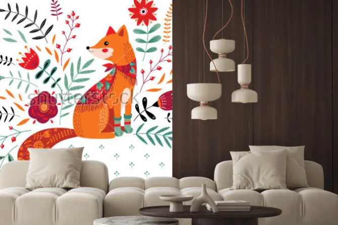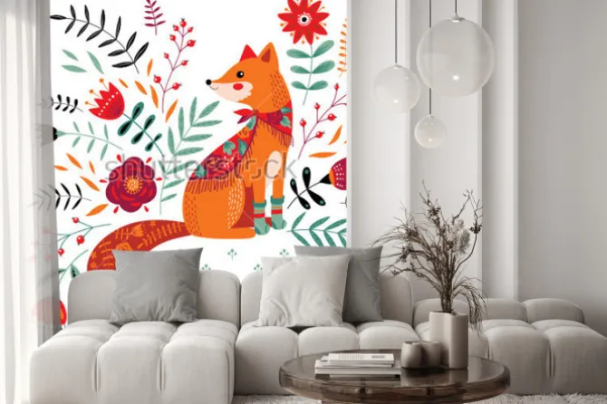 pokój dziecięcy, róże, kwiaty, tulipany, drzewa, ornament, lis, las
