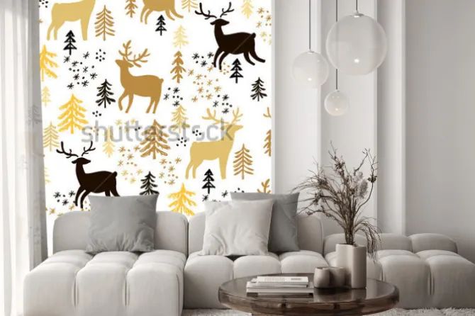 Naklejka: Ręcznie utwórz boże narodzenie wzór z jelenie, drzewa i śnieżynka.