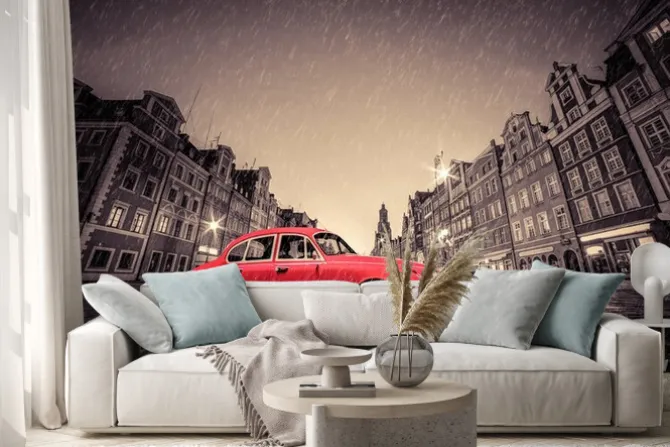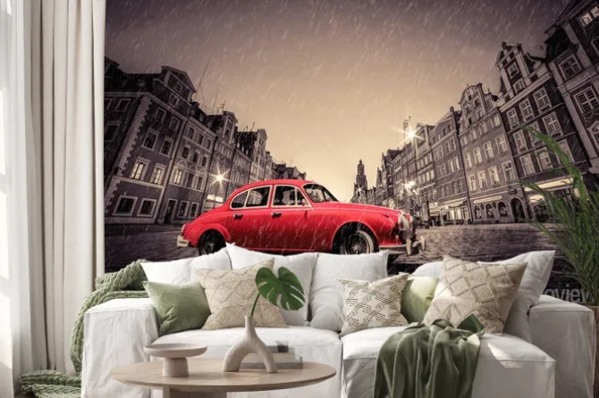 Be the first to review “Naklejka: Retro czerwony samochód na brukowanej zabytkowego starego miasta” Anuluj pisanie odpowiedzi