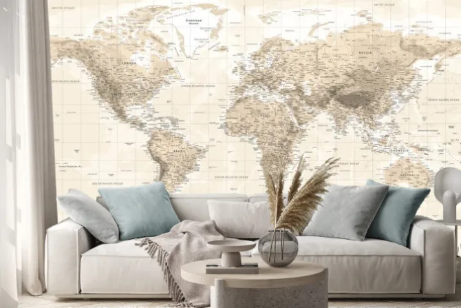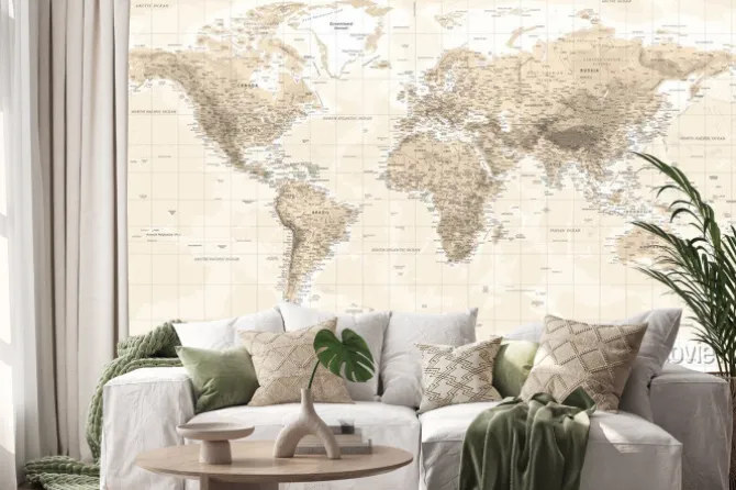 Retro mapa świata w odcieniach beżu.