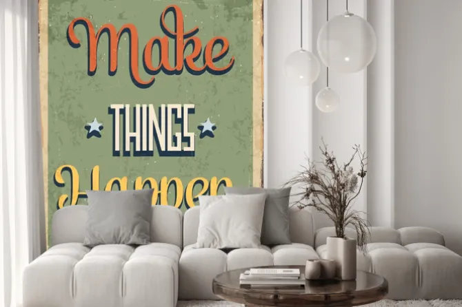 Retro metalu znak „Sprawia, że rzeczy się zdarzają”.