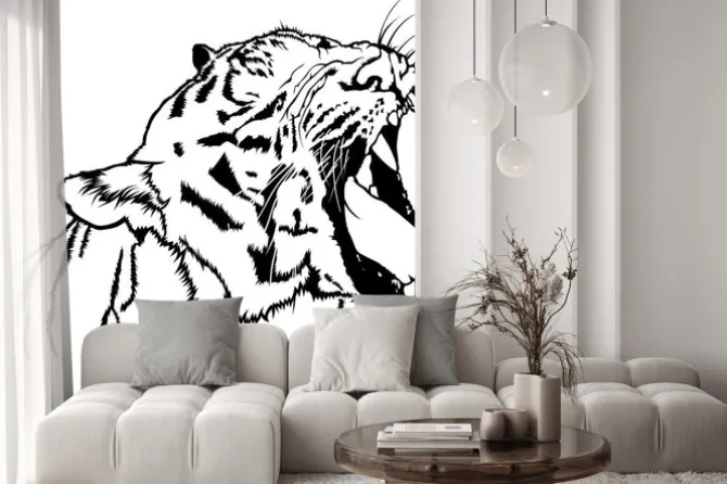 Naklejka: Roaring tiger – czarno-biały rysunek ilustracji wektorowych