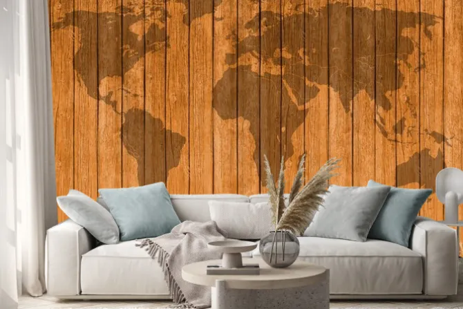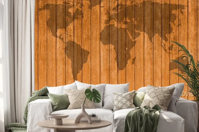 Naklejka: Rocznik mapa drewnianym tle tekstury