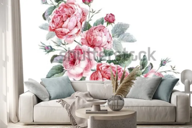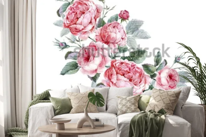 Naklejka: Romantyczne akwarelowe róże w odcieniach różu