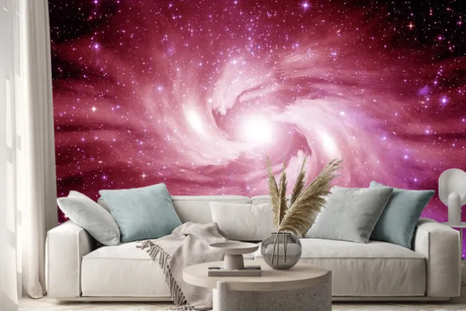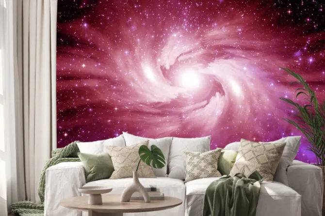 Naklejka: Różowa galaktyka spiralna z jasnym centrum