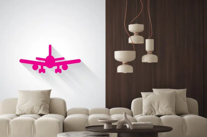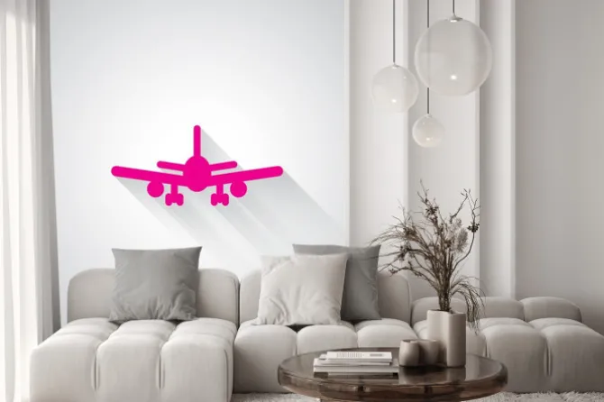 Naklejka: Różowy ikonę samolot internetowej na jasnoszarym tle