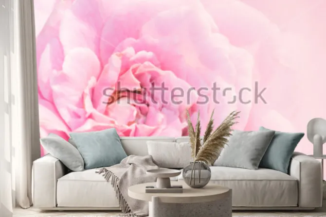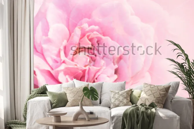 Naklejka: Różowy kwiat róży na różowym tle z płytkiej głębi ostrości i