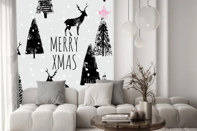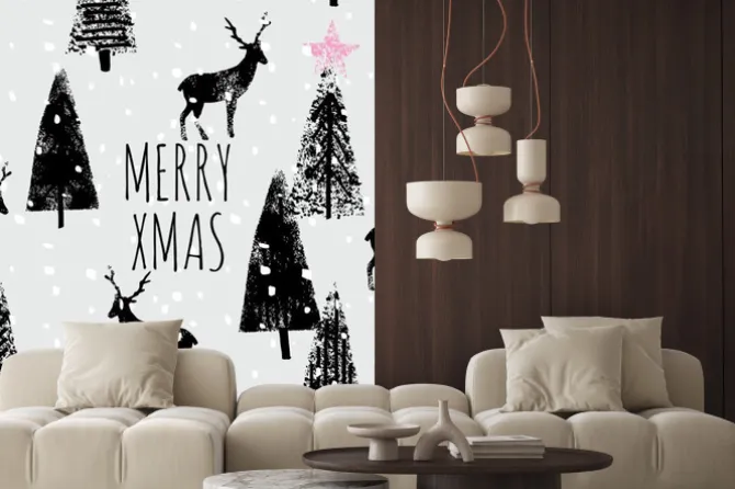 Naklejka: Rysowane ręcznie zimowy las modny wzór
