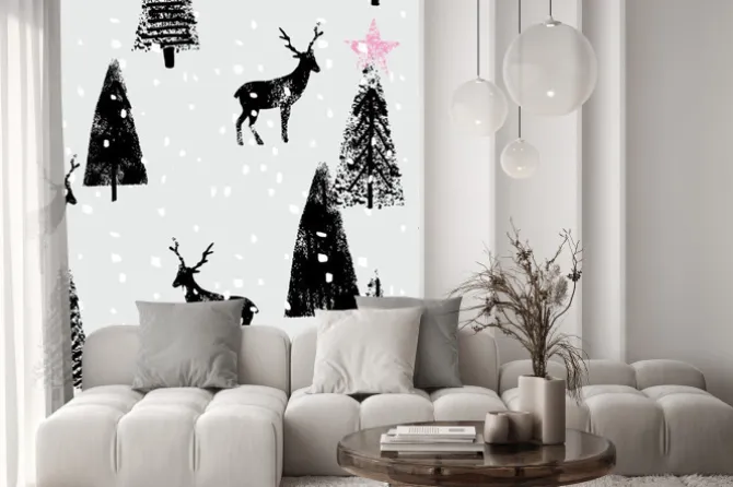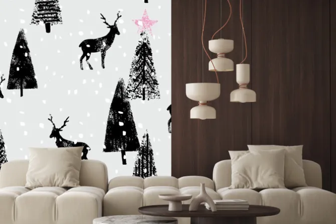 Naklejka: Rysowane ręcznie zimowy las modny wzór